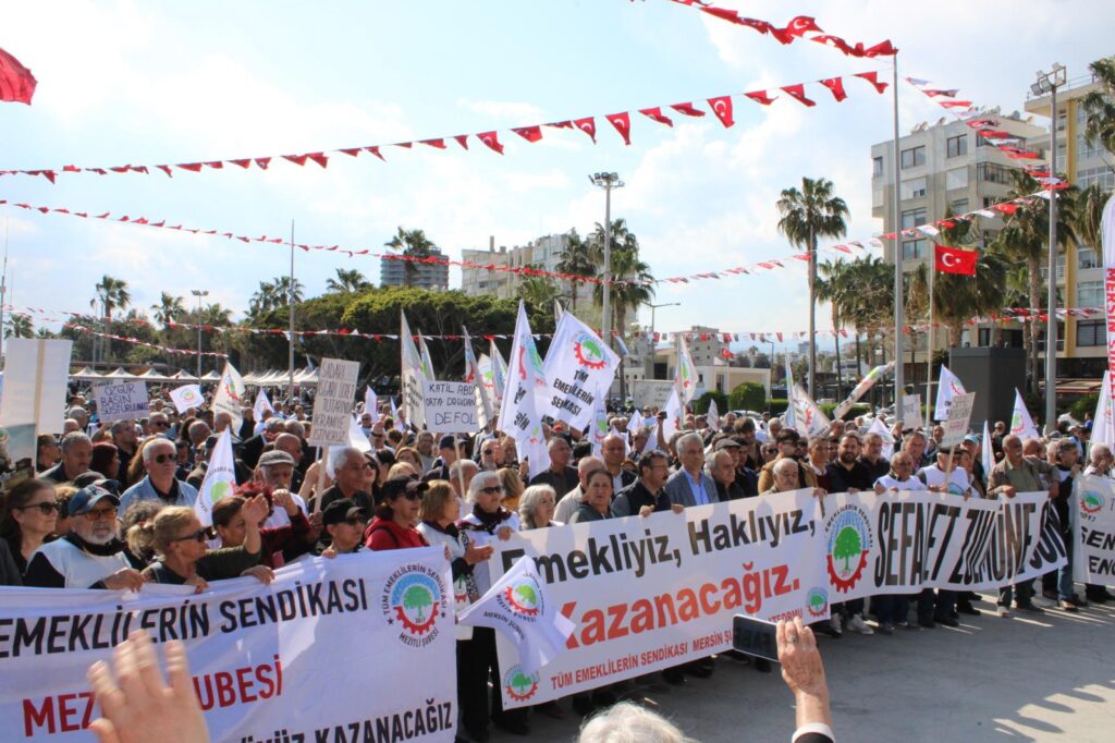 Tüm Emeklilerin Sendikası Mersin Şube Başkanı Ahmet Karakuş da milyonlarca emeklinin geçim sıkıntısı nedeniyle çalışmak zorunda kaldığını belirterek mevcut tabloyu “sefalet düzeni” olarak nitelendirdi.